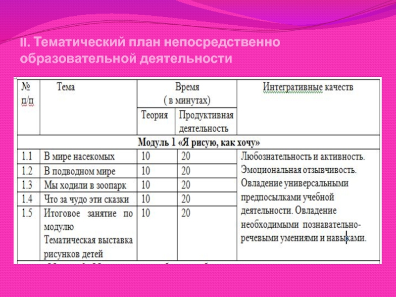 Слайд 13II. Тематический план непосредственно образовательной деятельности