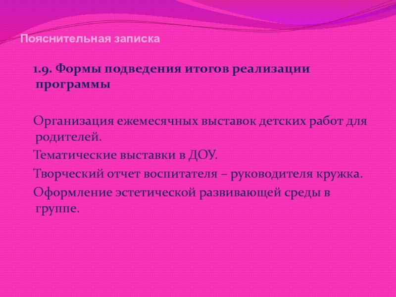 1.9. Формы подведения итогов реализации программы