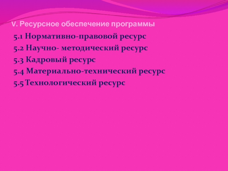 Слайд 22V. Ресурсное обеспечение программы