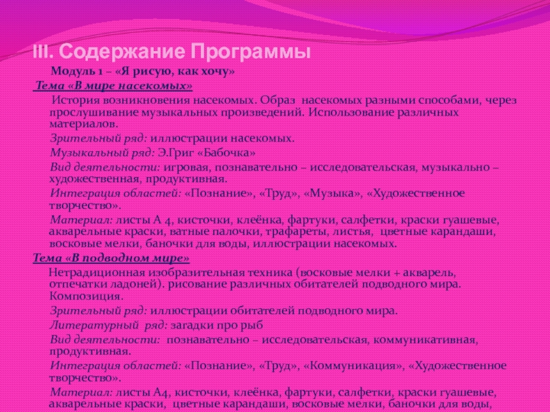 Слайд 15 III. Содержание Программы