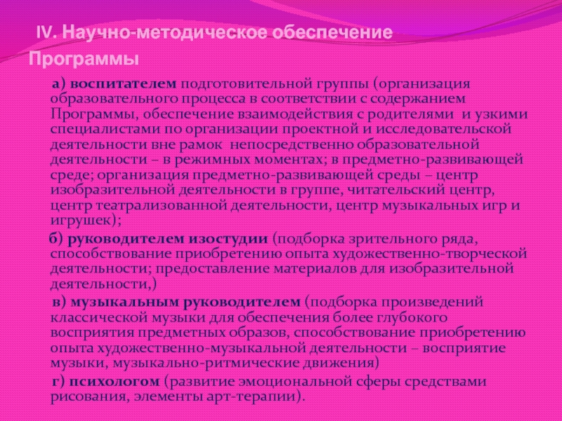 Слайд 18 IV. Научно-методическое обеспечение Программы