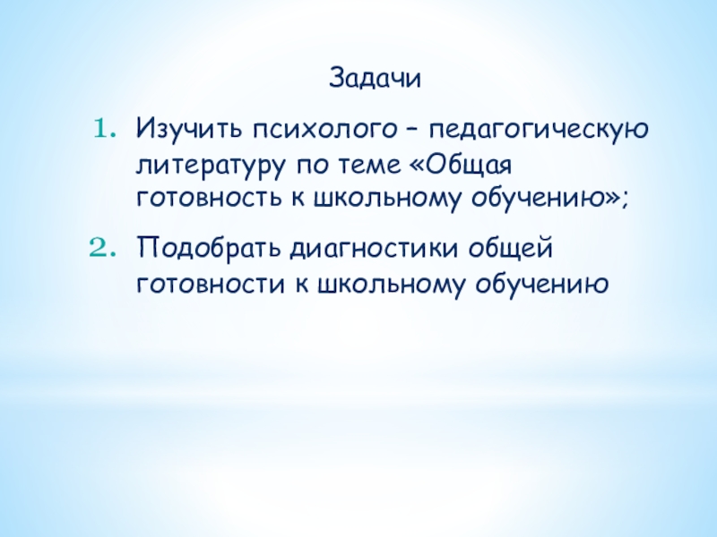 Изучить психолого – педагогическую литературу по теме «Общая готовность к школьному