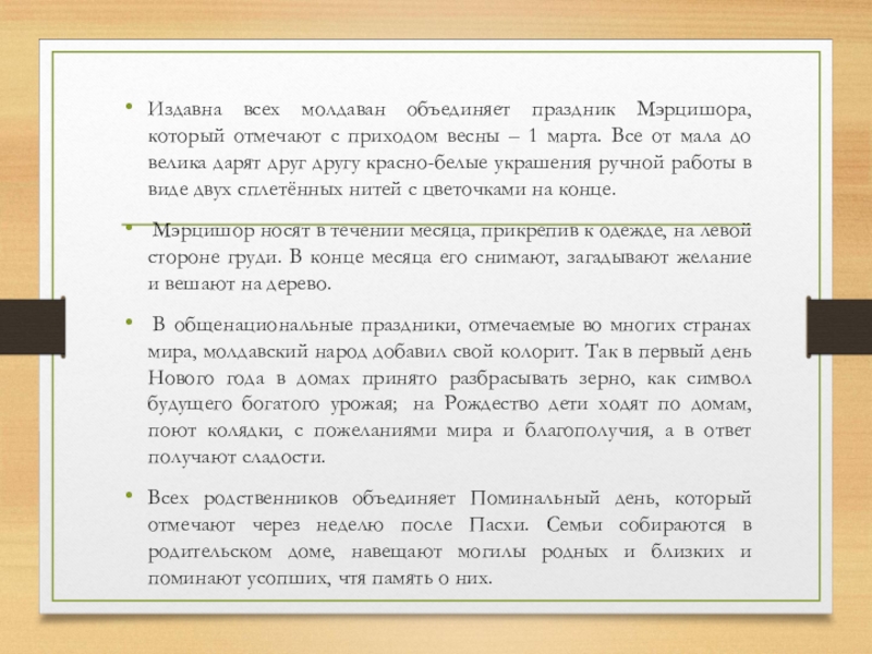 Слайд 10Издавна всех молдаван объединяет праздник Мэрцишора, который отмечают с приходом весны