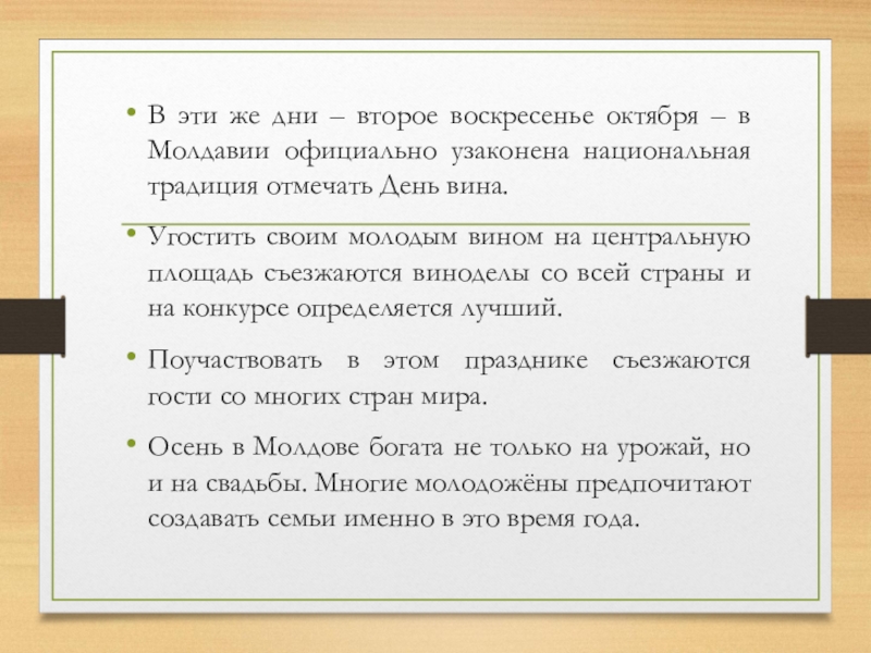Слайд 6В эти же дни – второе воскресенье октября – в Молдавии