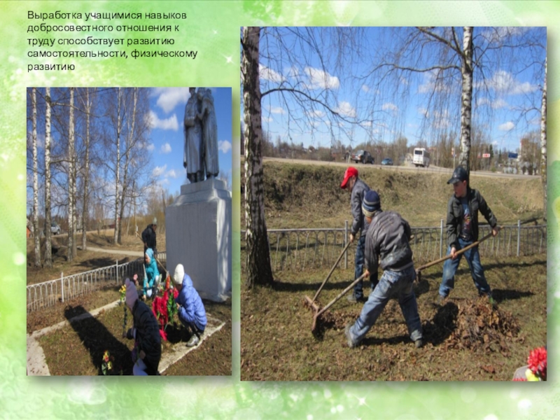 Выработка учащимися навыков добросовестного отношения к труду способствует развитию самостоятельности, физическому