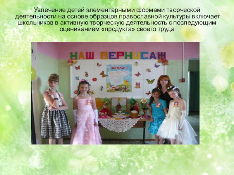 Слайд 14Увлечение детей элементарными формами творческой деятельности на основе образцов православной культуры