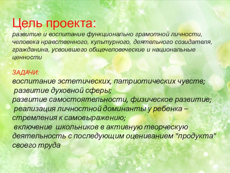 развитие и воспитание функционально грамотной личности, человека нравственного, культурного, деятельного