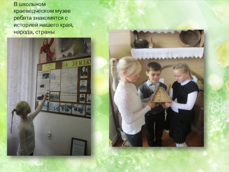 Слайд 6В школьном краеведческом музее ребята знакомятся с историей нашего края, народа,