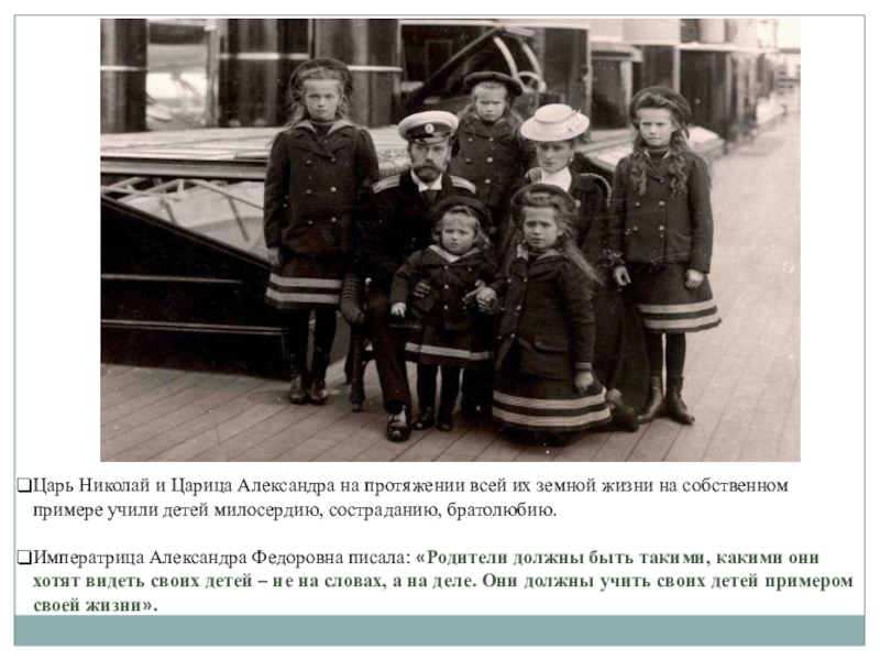 Императрица Александра Федоровна писала: «Родители должны быть такими, какими они хотят видеть своих детей – не на словах, а на деле. Они должны учить своих детей примером своей жизни».