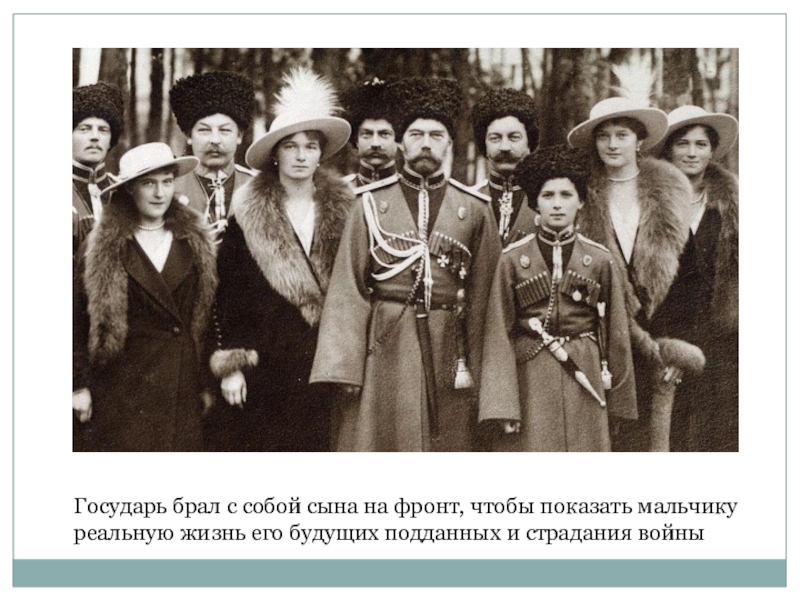 Слайд 12Государь брал с собой сына на фронт, чтобы показать мальчику реальную
