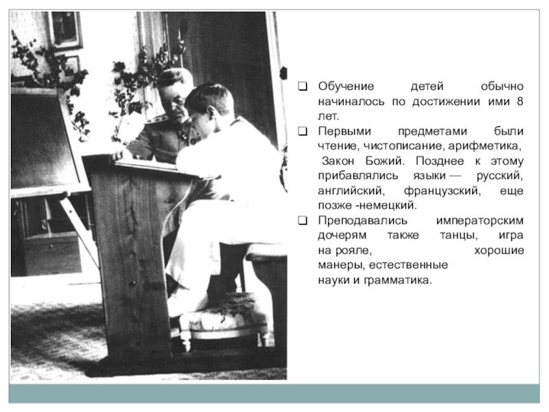 Слайд 7Обучение детей обычно начиналось по достижении ими 8 лет.