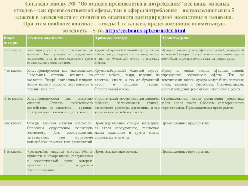 Слайд 6 Согласно закону РФ "Об отходах производства и потребления"