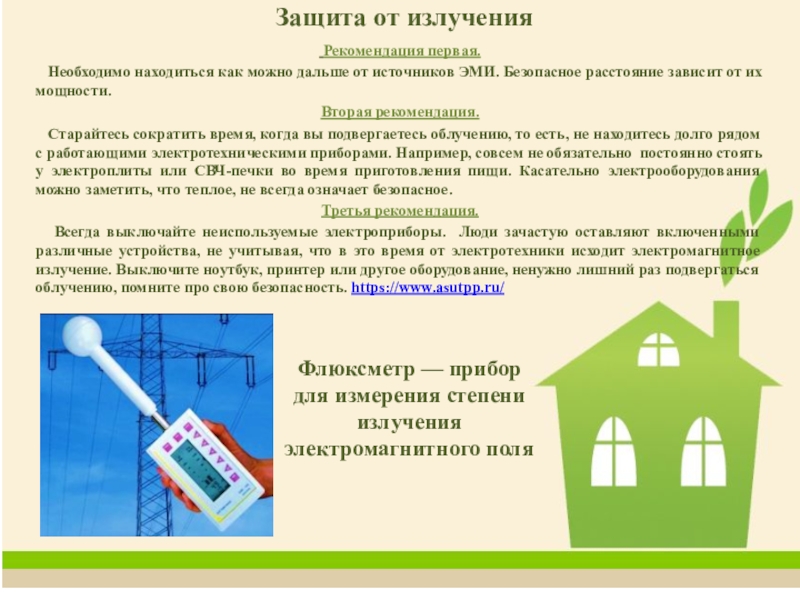 Всегда выключайте неиспользуемые электроприборы. Люди зачастую оставляют включенными различные устройства, не учитывая, что в это время от электротехники исходит электромагнитное излучение. Выключите ноутбук, принтер или другое оборудование, ненужно лишний раз подвергаться облучению, помните про свою безопасность. https://www.asutpp.ru/