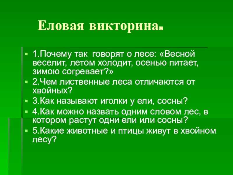 4.Как можно назвать одним словом лес, в котором растут одни ели или сосны?