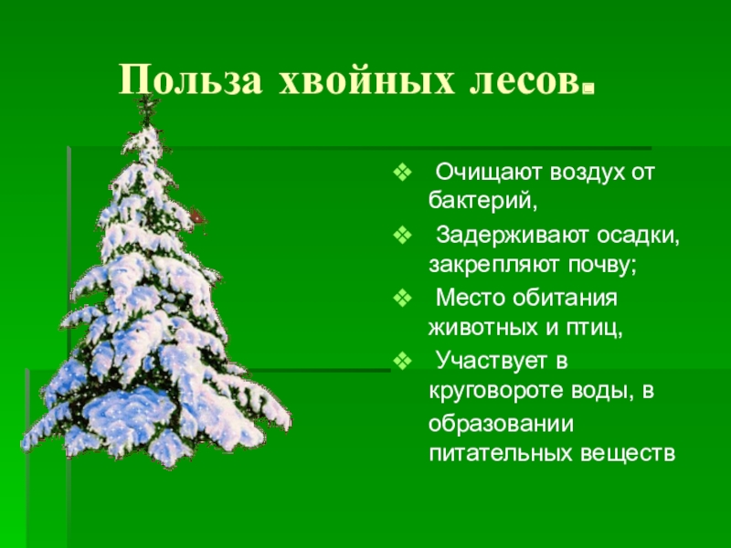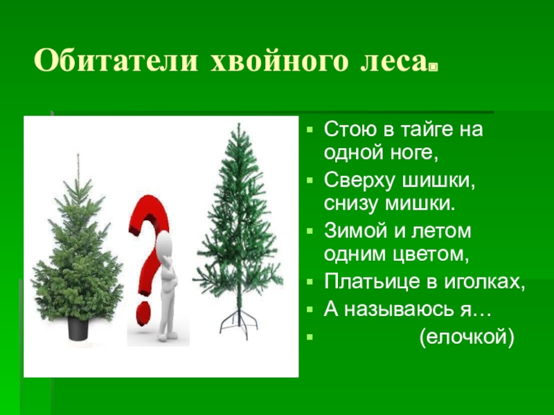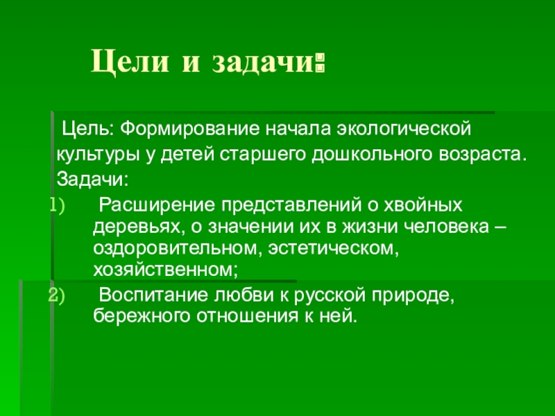 Расширение представлений о хвойных деревьях, о значении их в жизни человека – оздоровительном, эстетическом, хозяйственном;