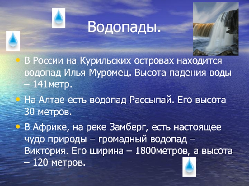 Слайд 28Водопады.