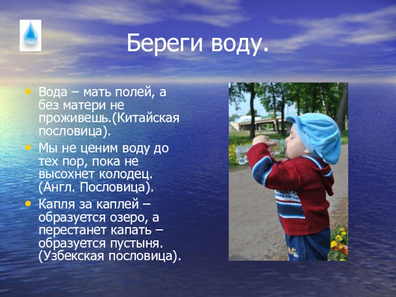 Слайд 31Береги воду.