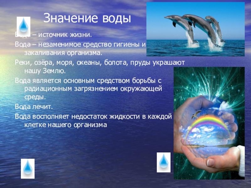 Слайд 6 Значение воды