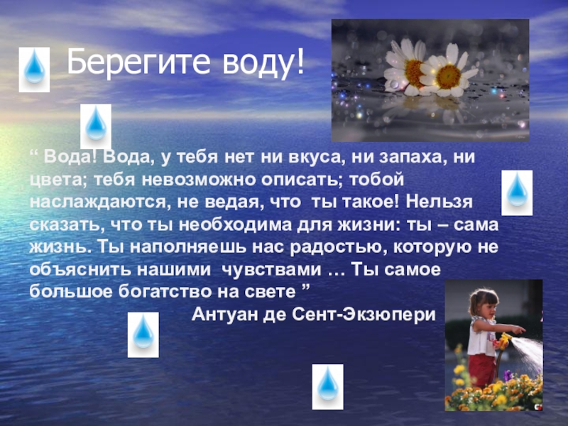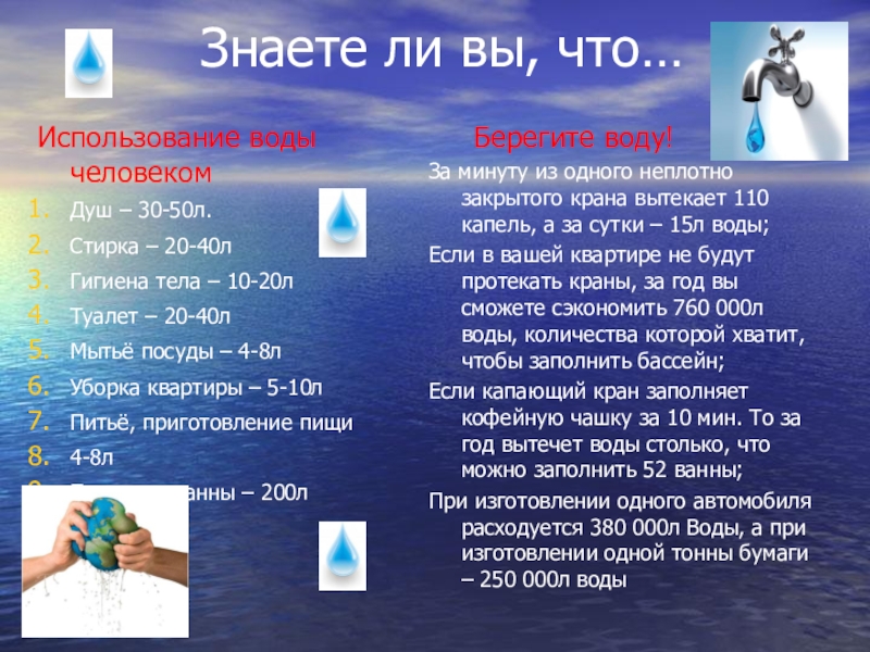 Знать, что океаны, моря, реки… - это вода, которая нас окружает);