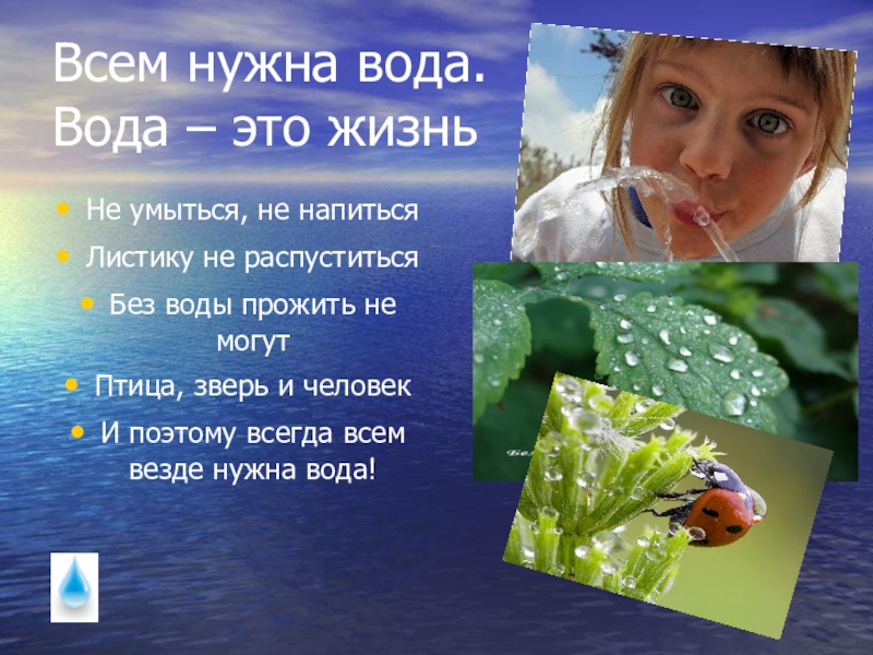 Слайд 29Всем нужна вода.
