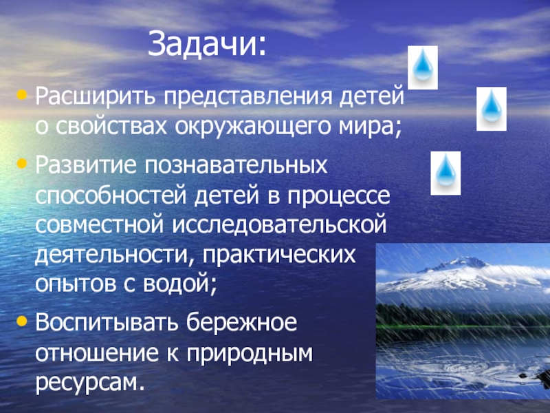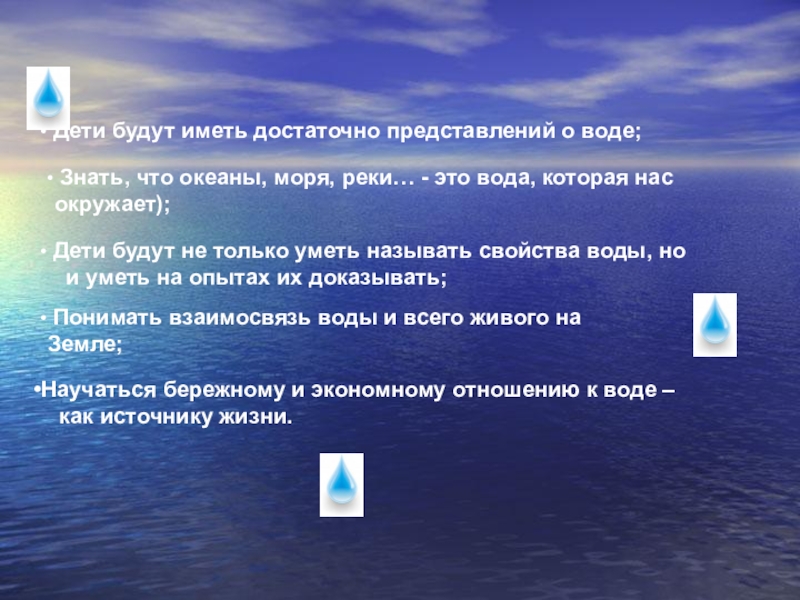 детей научно-познавательного, практически-деятельностного, эмоционально-нравственного отношения к воде как одному из источников жизни на Земле