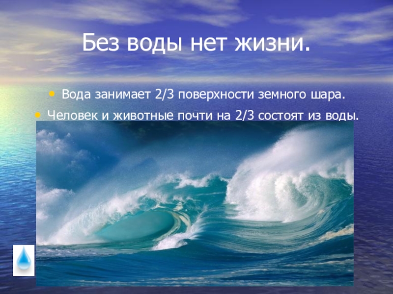 Слайд 5Без воды нет жизни.
