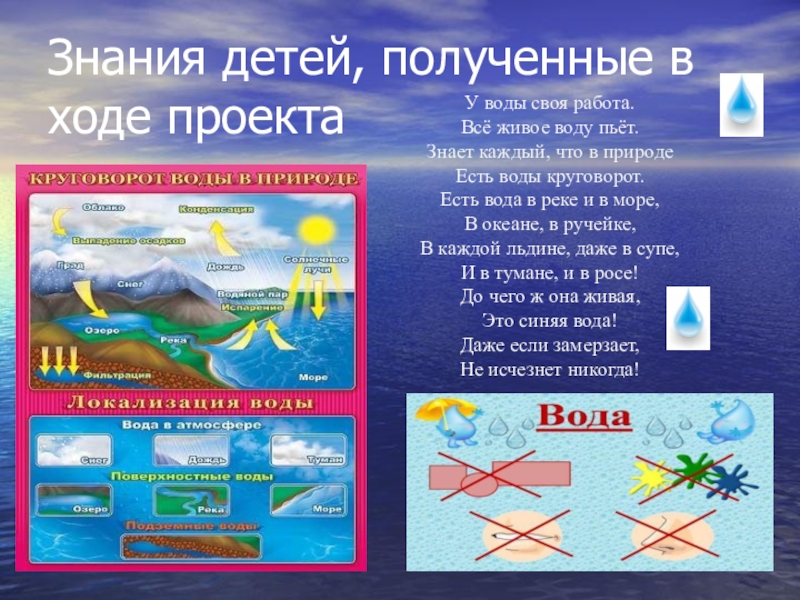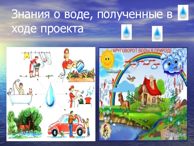 Слайд 27Знания о воде, полученные в ходе проекта