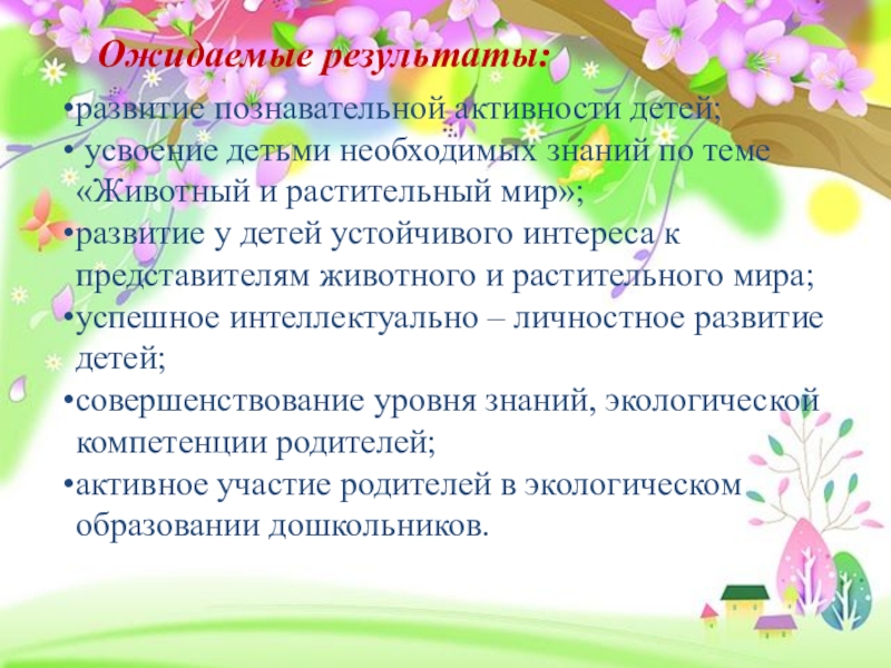 усвоение детьми необходимых знаний по теме «Животный и растительный мир»;