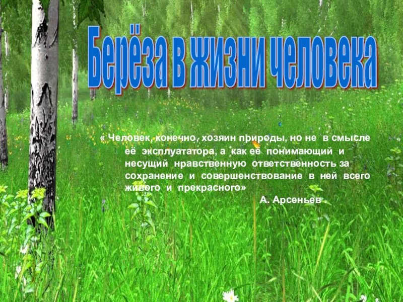 о её оздоровительном, хозяйственном и эстетическом значении в жизни человека.
