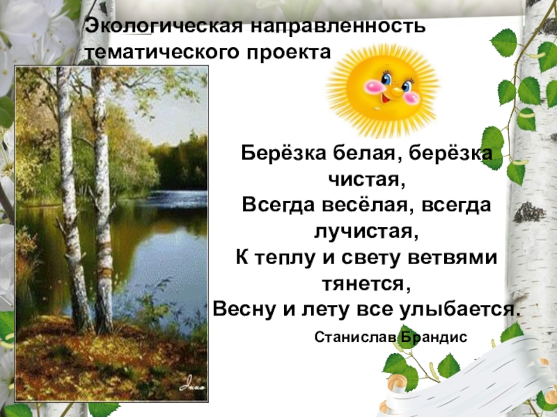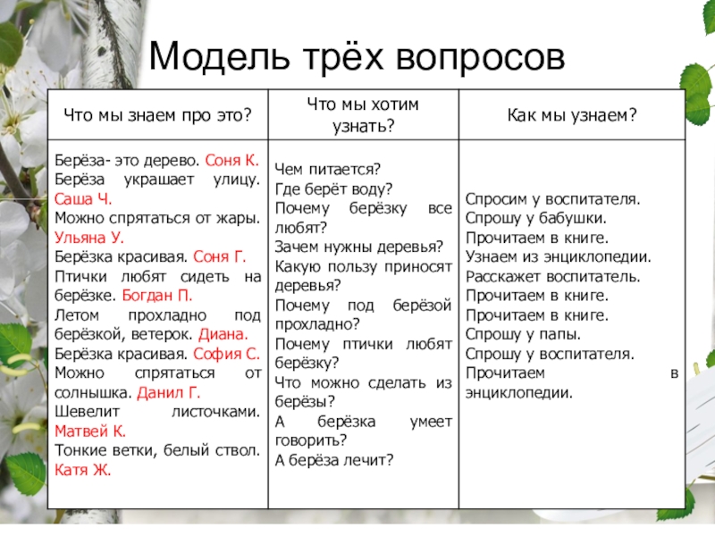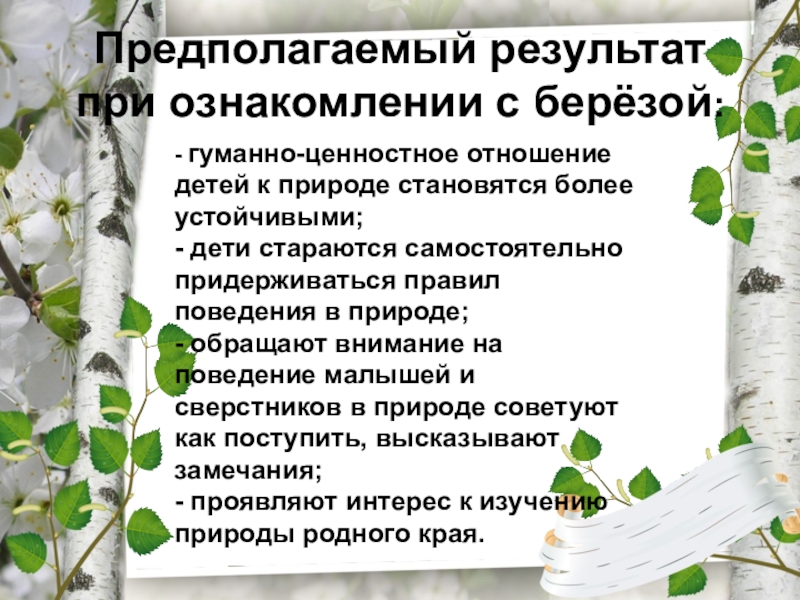 Слайд 10Предполагаемый результат при ознакомлении с берёзой: