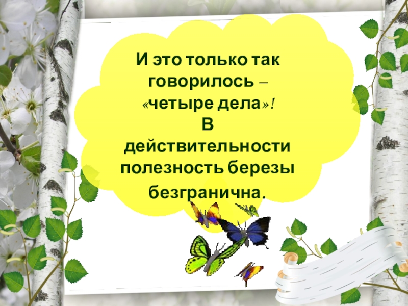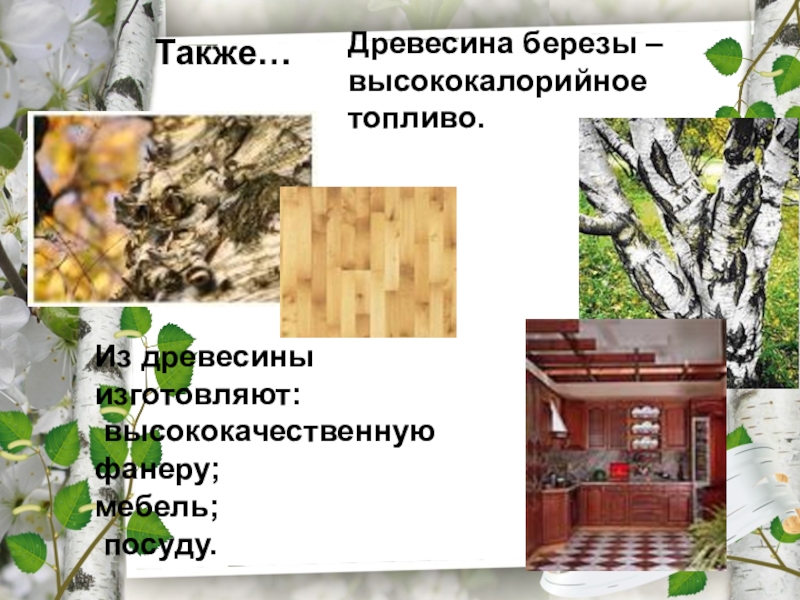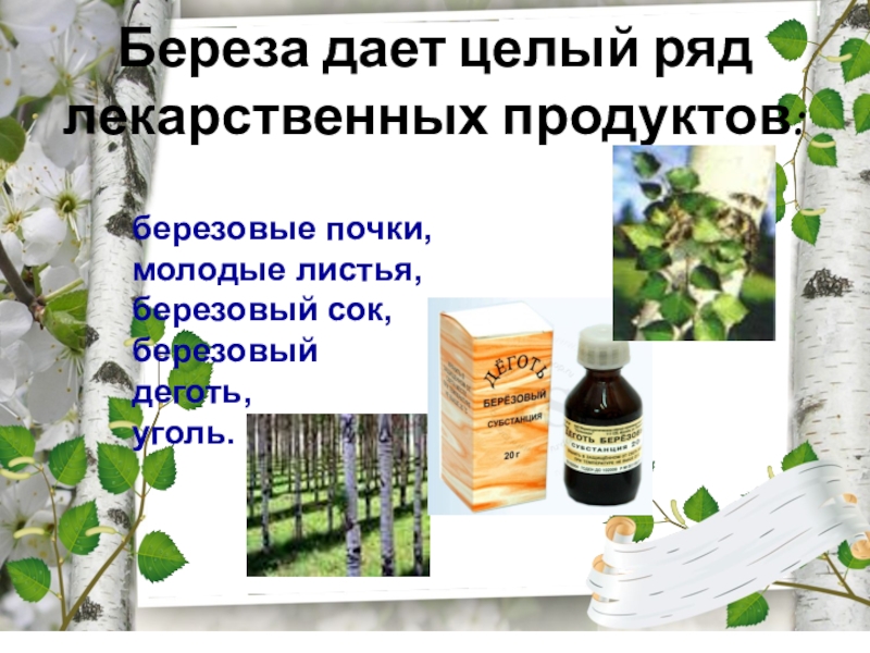 Слайд 24Береза дает целый ряд лекарственных продуктов: