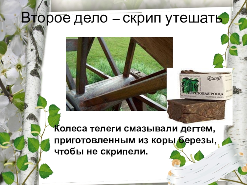 Колеса телеги смазывали дегтем, приготовленным из коры