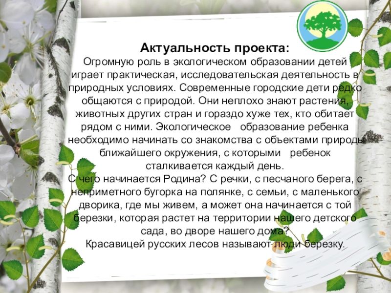 1. Недостаточные знания о самом почитаемом дереве в России – берёзе,