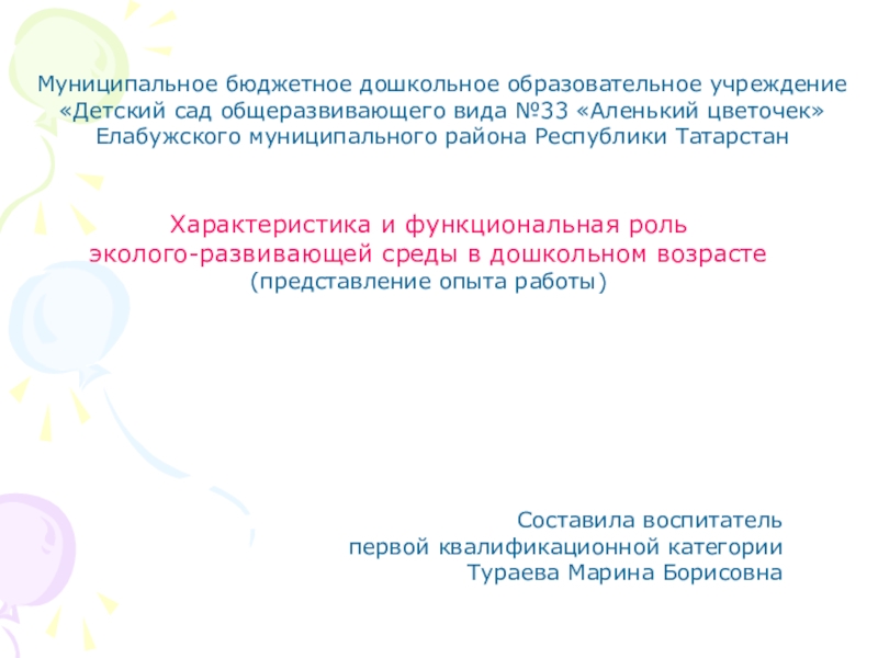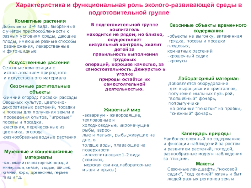Характеристика и функциональная роль эколого-развивающей среды в подготовительной группе