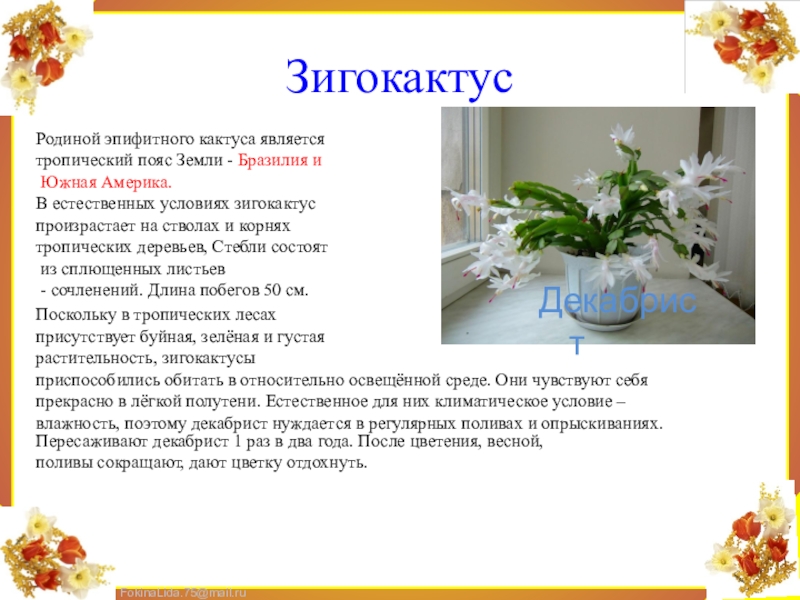 влажность, поэтому декабрист нуждается в регулярных поливах и опрыскиваниях.