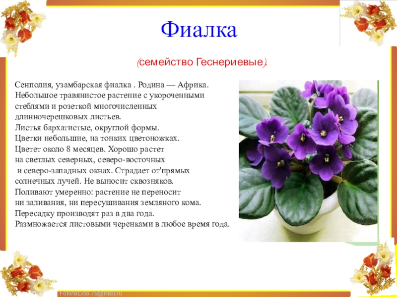 Слайд 8Фиалка
