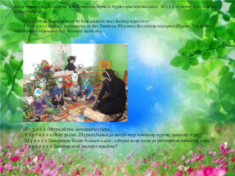 Т ә р б и я ч е.Әгәр дә син ,Шүрәле,болында матур-атур чәчәкләр күрсәң, нишләр идең?