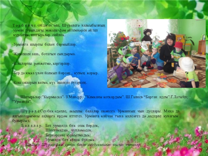 Слайд 3Тәрбияче .Карагыз әле, балалар,урман нинди матур!