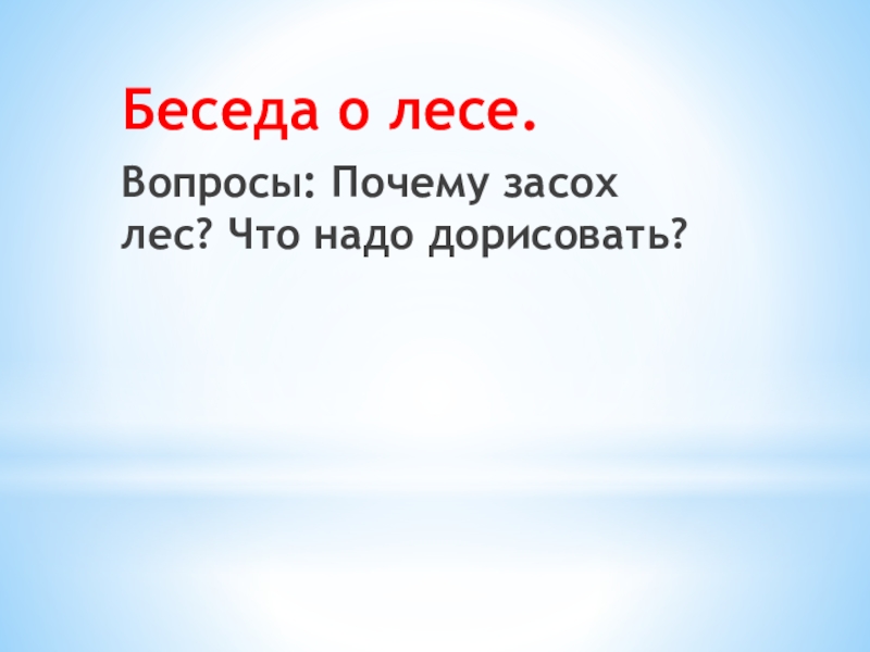 Беседа о лесе.Вопросы: Почему засох лес? Что надо дорисовать?