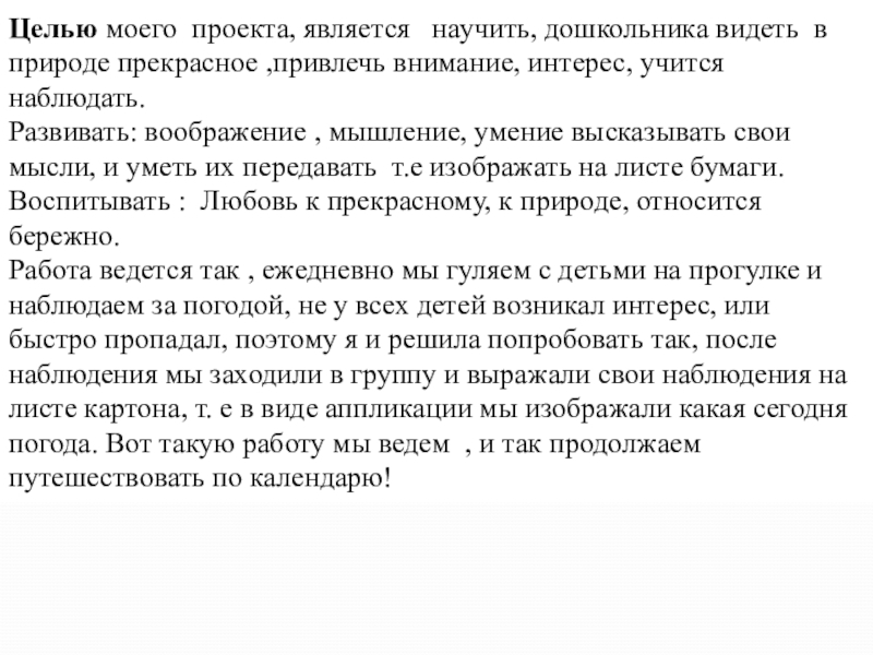 Слайд 4Целью моего проекта, является научить, дошкольника видеть в природе прекрасное