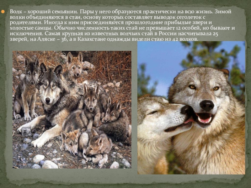 Слайд 11Волк – хороший семьянин. Пары у него образуются практически на всю