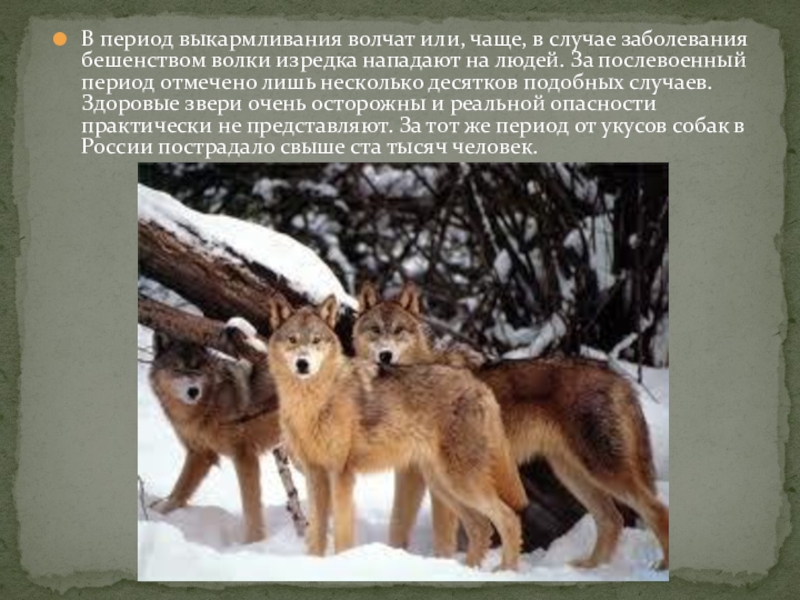Слайд 10В период выкармливания волчат или, чаще, в случае заболевания бешенством волки