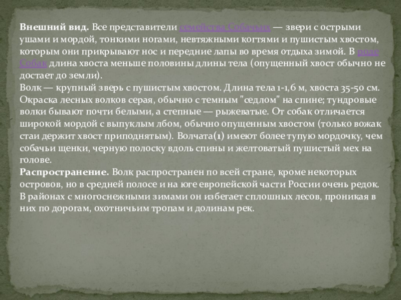 Слайд 7Внешний вид. Все представители семейства Собачьих — звери с острыми ушами и мордой, тонкими