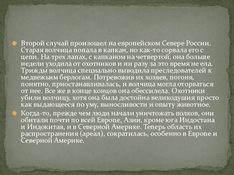 Слайд 5Второй случай произошел на европейском Севере России. Старая волчица попала в