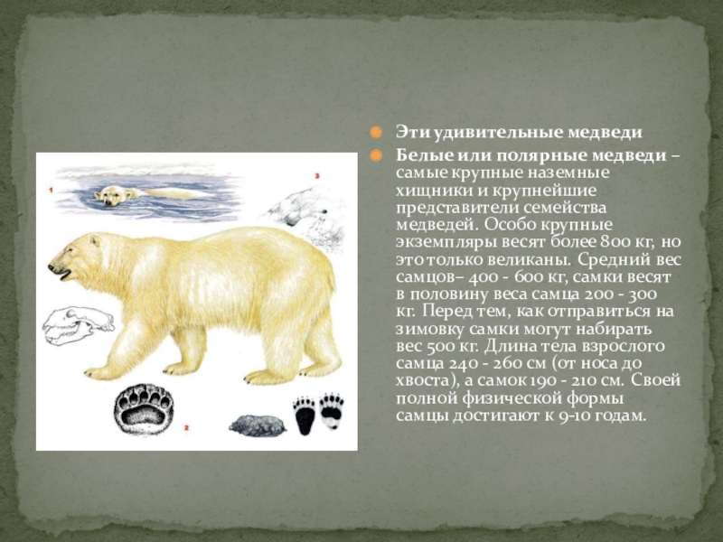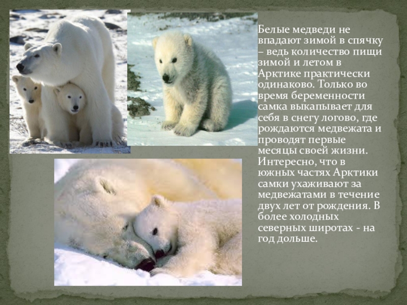 Слайд 17Белые медведи не впадают зимой в спячку – ведь количество пищи