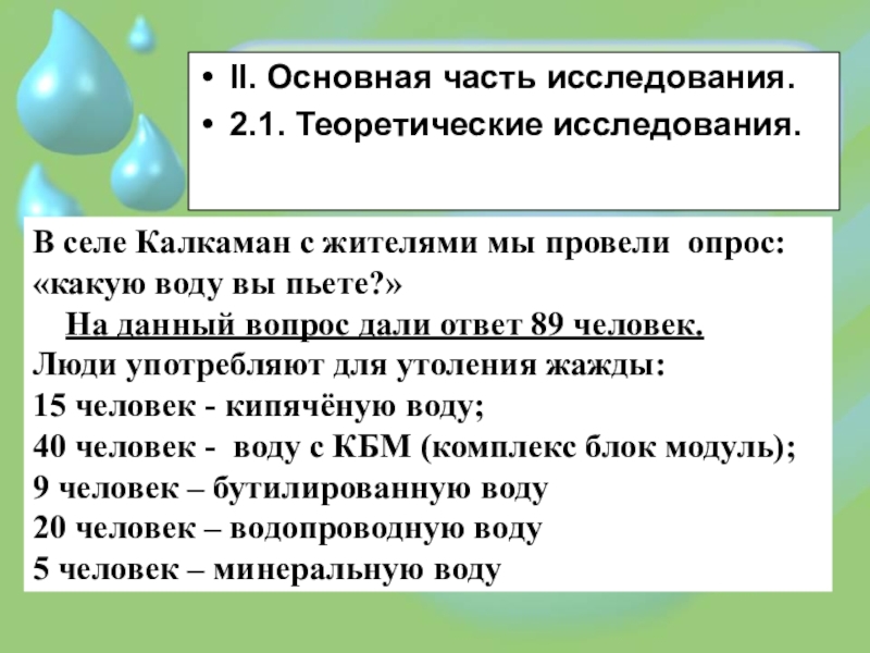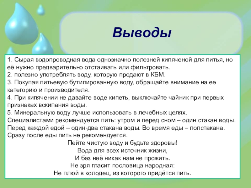 Актуальность темы. Человеку необходимо знать, какая питьевая вода хорошо влияет на организм, а какая ему вредна.