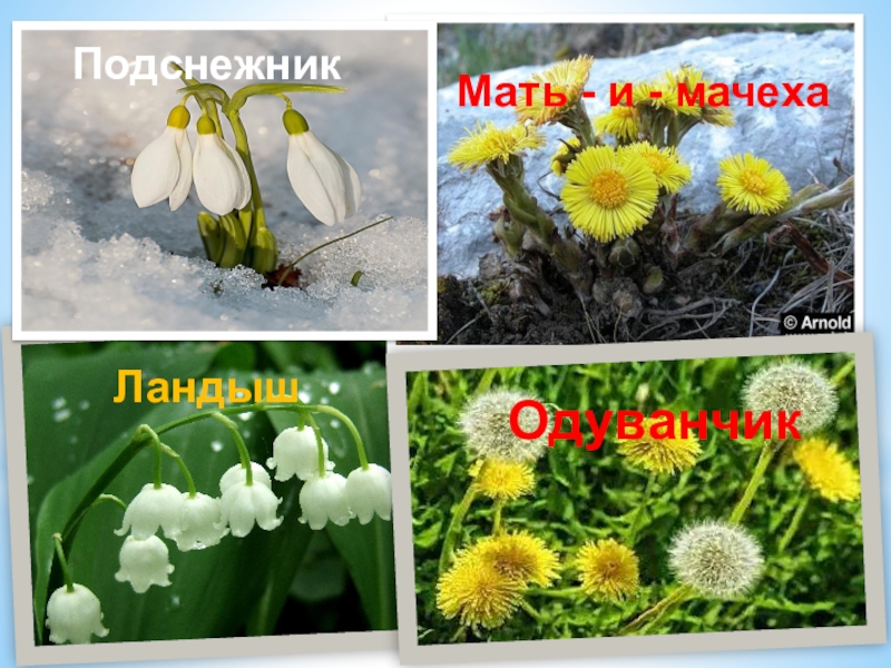 Подснежник      Ландыш  Мать - и - мачехаОдуванчик