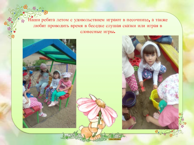 Слайд 8Наши ребята летом с удовольствием играют в песочнице, а также любят