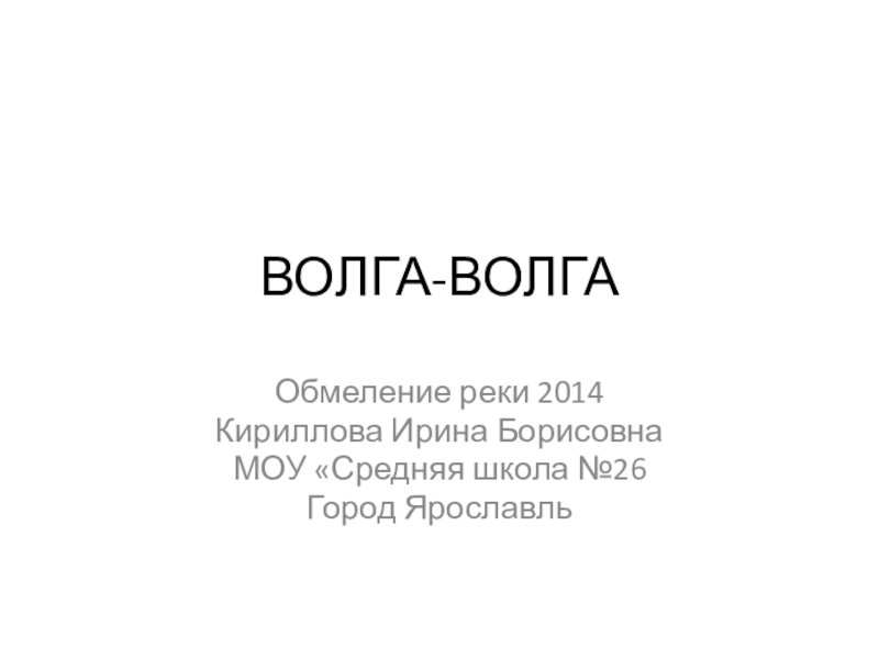 ВОЛГА-ВОЛГАОбмеление реки 2014 Кириллова Ирина БорисовнаМОУ «Средняя школа №26Город Ярославль