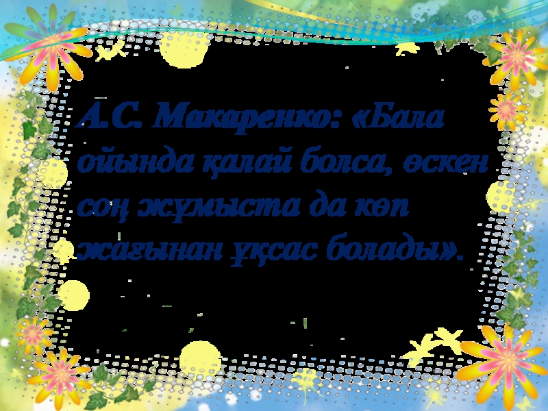 Слайд 6А.С. Макаренко: «Бала ойында қалай болса, өскен соң жұмыста да көп